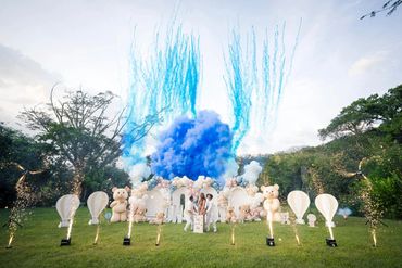 Nos especializamos en revelaciones de género, ofreciendo la organización del evento y la venta de productos como extintores de color, bengalas, balones y más, para crear momentos únicos e inolvidables.